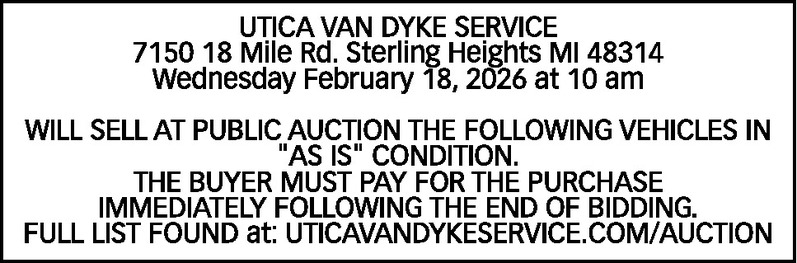 WILL SELL AT PUBLIC AUCTION THE FOLLOWING VEHICLES IN